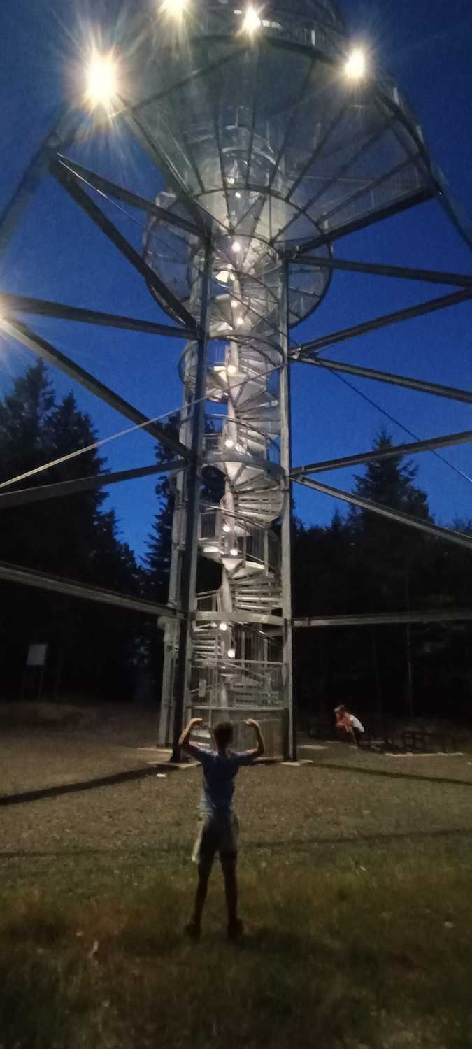 Wakacje na półmetku pogoda dopisuje czas obrać jedyny słuszny kierunek ….. na południe. Córcia pojechała na babski wyjazd więc długo się nie zastanawialiśmy ze Stachem i czym prędzej zaczęliśmy pakować sprzęt do auta. Jeszcze szybki serwis maszyn i możemy startować. W planie Singletrack pod Smrkem i Świeradów, oraz Via ferraty na Wodnej Bramie nad Izerą. Na miejsce pod Zajęcznik docieramy dopiero o 21:20 dziś nocleg na dziko. Upał nieziemski pomimo późnej pory wiec postanawiamy wejść jeszcze na wieżę widokową na Młynicy.