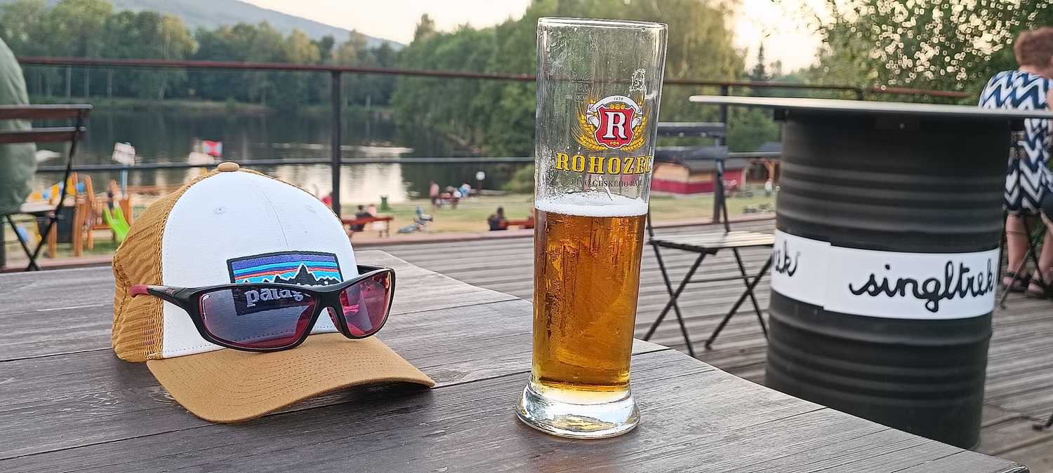Kolejny kierunek baza pod Smrkem. Pakujemy się w auto i chwilę później meldujemy się na polu namiotowym Nové Město pod Smrkem. Szybka kąpiel w jeziorku i ciśniemy przez las na rowerach mając dużo radości na zjazdach. Młodego aż nosi i co chwilę dostaje ode mnie reprymendę (pamiętaj, że drzewo nie ustąpi ci miejsca). Zabawa przednia lecz w końcu przegrywamy z upałem. Wracamy, kolejna kąpiel i oczywiście hranolky se sýrem. Rozsiadam się na hamaku z kubkiem świeżo zaparzonej kawy zadowolony z udanego dnia a młody znika na szutrowym pumptracku rywalizując z czeskimi kolegami. Mija godzina i słyszę za sobą tekst ….”tata mam dla ciebie propozycję… no słucham – odpowiadam. Jedziemy jeszcze jedną pętlę?”
