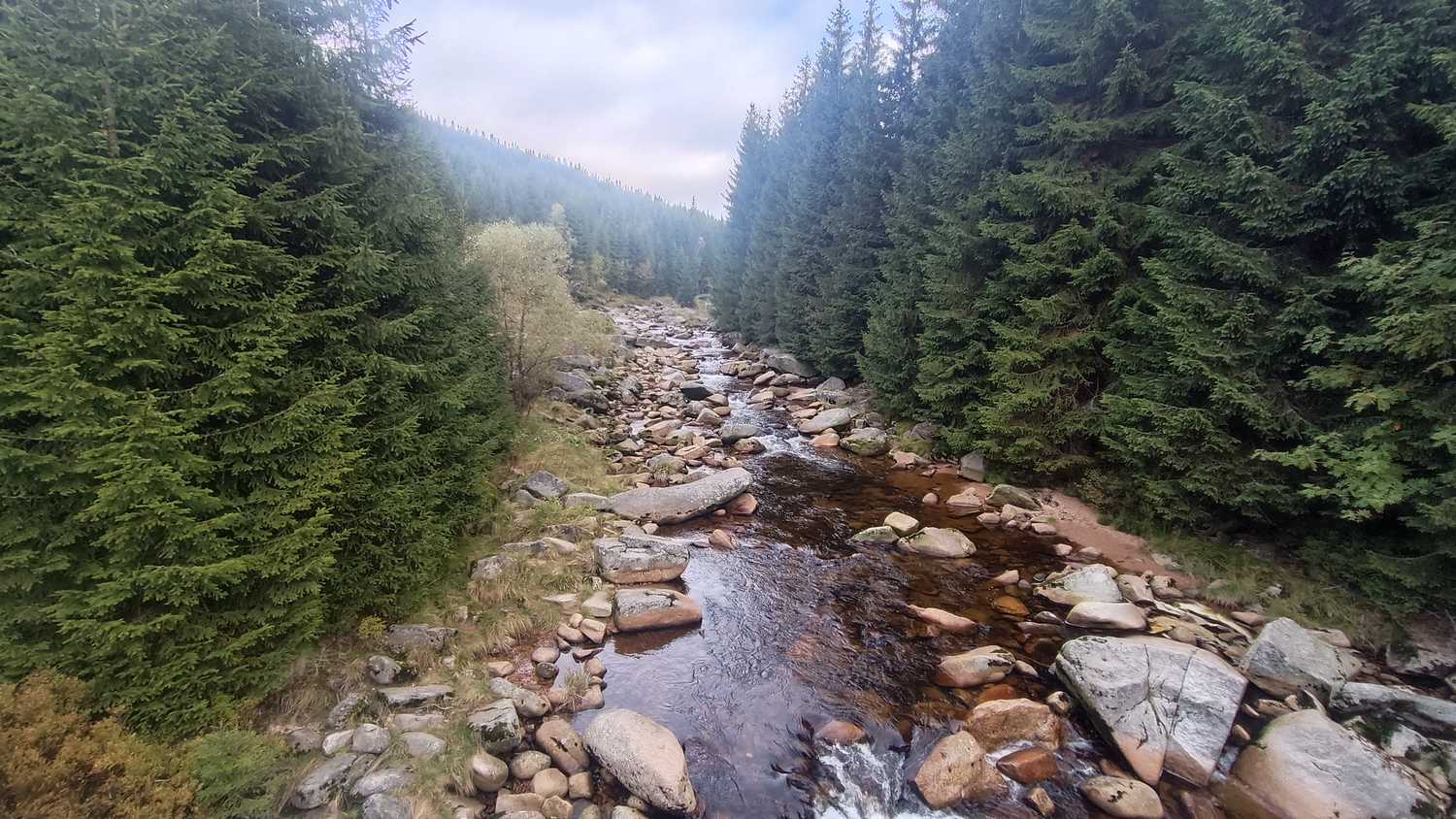 Ze szlaku czerwonego odbijamy na żółty, który przez muzeum Gór Izerskich doprowadzi nas do mostku nad rzeką Izera. Uwaga szlak żółty fragmentem prowadzi płytami betonowymi, z których w pewnym momencie odbijamy w prawo zgodnie z oznaczeniem szlaku a płyty dalej biegną prosto. Nowy mostek na Izerce oddano w 2022r (poprzedni służył dzielnie od 2005r). Warto poczytać sobie historię mostków na tej przeprawie rzecznej bo jest ona ciekawa i ma duże znaczenie historyczne dla tego regionu.