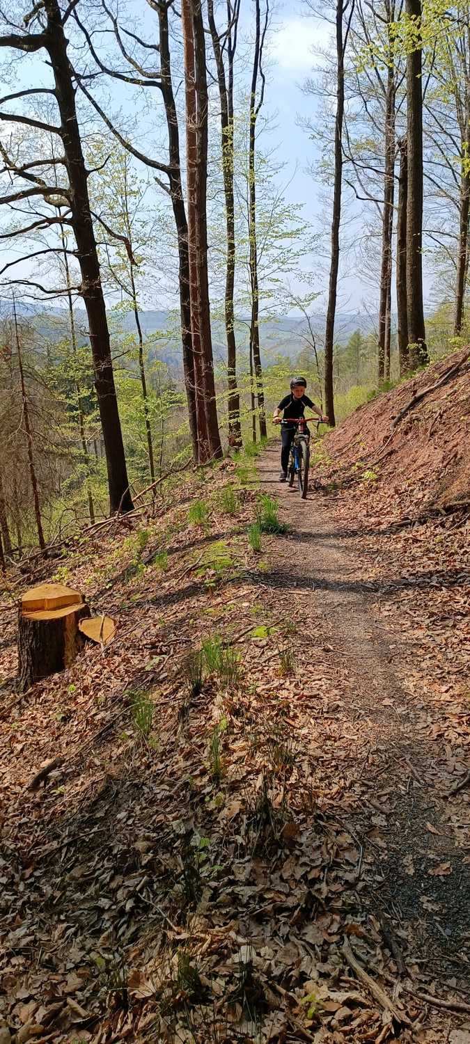 Tata jedziemy na pumptrack, słyszę pytanie syna. No pewnie tylko weź hulajnogę. Nie, wezmę rower. Rower ? Powtarzam zdziwiony. Taaaak, słyszę potwierdzenie. No dobra może być rower. Kilka godzin później przypatrując się jak pompuje rowerem z góry na dół przeszło mi przez myśl, a może na majówkę spróbujemy na singletracki. Przecież nie różnią się zbytnio trudnością od pumptracka. Problem tylko, że czasami trzeba depnąć pod górkę. Zacząłem urabiać syna, bo o córkę się nie bałem, wiedziałem że da radę na podjeździe. Kilka filmów na YouTube oraz dziki flow na zjeździe przekonało młodego, że może być fajnie. Zatem postanowione, jedziemy na jeden dzień i zobaczymy czy mnie znienawidzą. Trochę już zjechałem takich tras wiec mając jakieś rozeznanie na start wybrałem góry jak najbliżej Poznania. Góry Kaczawskie zwane, też krainą wygasłych wulkanów. Tak to nie ściema w Polsce taż mamy wulkany, ale nieczynne.