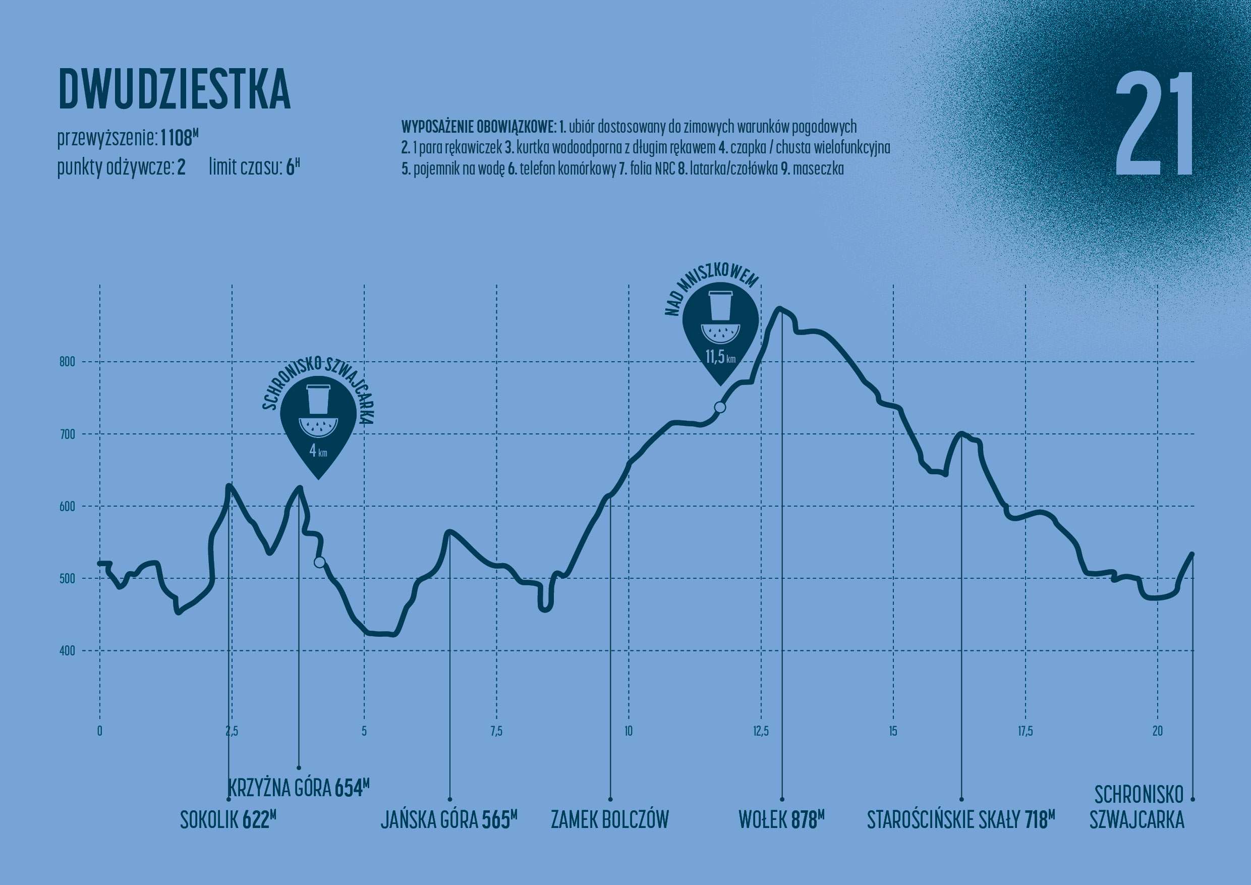 - Dwudziestka – 21km suma przewyższeń 1108m