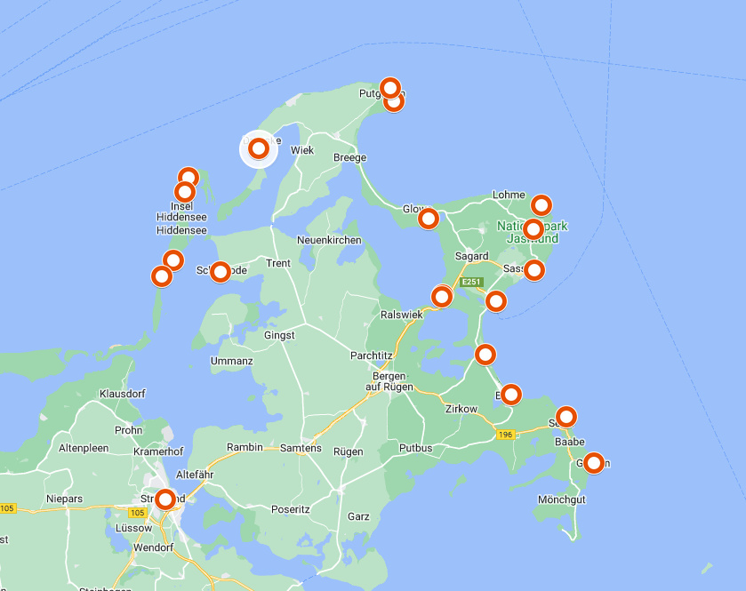 1. Gdzie spać: Rugia jest bardzo popularnym miejscem wypoczynkowym wśród Niemców i w okresie letnim może być tam dość tłoczno. Na całej wyspie jest dość sporo pól kempingowych, namiotowych, hoteli i kwater. Nie powinno być problemu ze znalezieniem miejsca na nocleg. Proponuje jednak wcześniej sprawdzić w Internecie wybrane przez was miejsca aby się nie okazało, że są zamknięte lub ich jakość w stosunku do ceny jest niezadowalająca. Jadąc kamperem można też nocować na płatnych parkingach zlokalizowanych w widokowych miejscach na terenie wyspy. Należy jednak sprawdzić bo nie wszędzie jest możliwość zaparkowania kampera. Ciekawym miejscem na nocleg są mariny – porty jachtowe, które mogą mieć konkurencyjne ceny dla niektórych pól namiotowych (myśmy z nich korzystali).